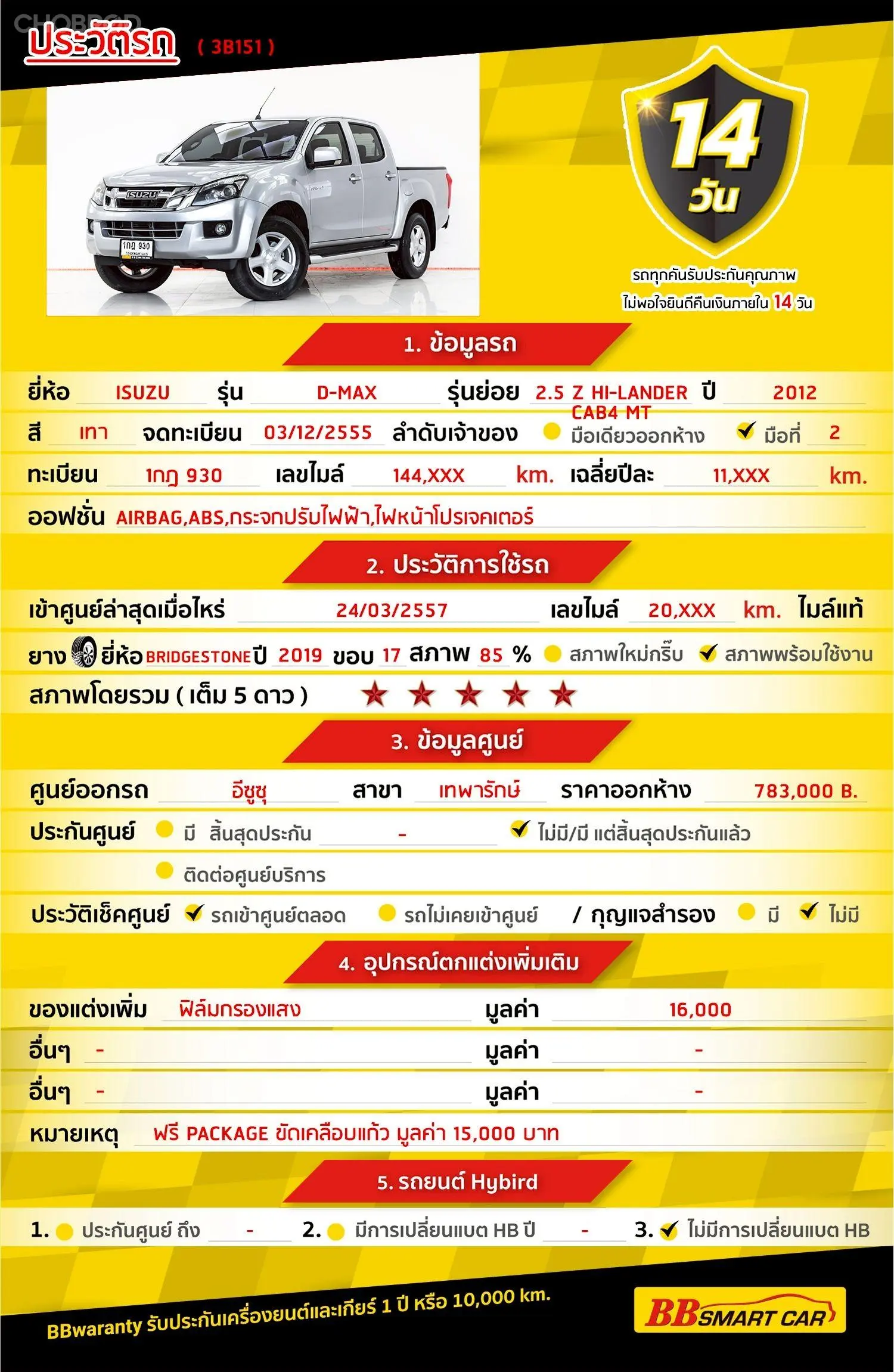 ISUZU D-MAX 2.5 Z HI-LANDER 4DR MT 2012 ออกรถ 0 บาท จัดได้ 379,000 บ. Line:@*******แสดงข้อมูล 🔥 จอง 199 บาท ส่งบัตรประชาชน รู้ผลอนุมัติภายใน 30 นาที ไม่ผ่านคืนเงินจองทุกกรณี 🔥 ซื้อรถกับ BB พร้อมให้คำปรึกษา แก้ทุกปัญหา ให้ทุกเรื่อง บริการ call center 24 ชม. 🔥 BB Care Plus รับประกันหลังการขาย สูงสุด 2 ปี หรือ 20,000 km. 🔥 มีรถให้เลือกมากกว่า 1,800 คัน สาขา 3 ถนนกาญจนาภิเษก ใกล้โลตัสบางใหญ่ รหัสรถ 3B151 ราคา 359,000 บ. ผ่อนเพียง 7,168 บ. Brand : ISUZU Year : 2012 Model : D-MAX Grade : 2.5 Z HI-LANDER 4DR Engine : 2500 cc. Type : ดีเซล Gearbox : MT Color : เทา Mileage : 144,xxx km. (ซื้อสด ราคานี้ยังไม่รวมค่าดำเนินการ 10,000 บ.) 🚩 Price. 359,000 บาท ยอดจัด : 369,000 บาท เงินดาวน์ : ฟรีดาวน์ ประกันภัย : ฟรีประกันภัย 1 ปี ค่าดำเนินการ : 10,000 รวมออกรถ 0 บาท ผ่อน 36 = 12,694 บาท ผ่อน 48 = 9,953 บาท ผ่อน 60 = 8,555 บาท ผ่อน 72 = 7,623 บาท ผ่อน 84 = 7,168 บาท *เงื่อนไขเป็นไปตามที่ไฟแนนซ์กำหนด โปรโมชั่นพิเศษ สำหรับลูกค้าเครดิตดี 🚩เลือกรับเรทดอกเบี้ยพิเศษ 📍36 งวด = 1.29% 📍48 งวด = 1.99% 📍60 งวด = 2.39% 📍72 งวด = 3.59% 🔥 เงื่อนไข โปรโมชั่น ดอกเบี้ยเริ่มต้น 1.29% ตลอดอายุสัญญา - ยอดจัดไฟแนนซ์ 300,000-600,0000 บาท - ผ่อนสูงสุด 72 เดือน - เป็นลูกค้าประวัติดี พนักงานประจำ เงินเดือน 20,000 บาท ขึ้นไป - ค่าดำเนินการแคมเปญ 20,000 บาท (รวมในยอดจัดได้) 🎗Car Hightlight มาแล้วค่ะ ISUZU D-MAX เป็นรถที่มุ่งเน้นความประหยัดพลังงาน แต่มีสมรรถนะที่แรงขึ้น แรงบิดดีขึ้น รวมถึงการบำรุงรักษาที่ง่าย รถสภาพป้ายแดงค่ะ ราคาไม่แพง ไมล์แท้ รถดูแลศูนย์ตลอดค่ะ 🎗ภายใน ภายในสะอาดเรียบร้อย เบรค ABS Airbag เซ็นทรัลล๊อก กระจกไฟฟ้า แอร์ เบาะหนังแท้ พวงมาลัยเพาเวอร์ ไมล์ Digital วิทยุ - CD กระจกมองข้างปรับไฟฟ้า กุญแจรีโมท-สัญญานกันขโมย กระจกมองข้างพับไฟฟ้า อ๊อฟชั่นครบคันเลยค่ะ สภาพใหม่มากค่ะ 🎗ภายนอก ไม่มีชนหนักหรือพลิกคว่ำค่ะ แม็กลายเนอร์ ไฟตัดหมอก บันไดข้าง ไฟเลี้ยวกระจกมองข้าง ไฟซีนอน ไฟโปรเจคเตอร์ รถดูแลรักษาง่าย แถมช่วงล่างยังแน่นๆ ให้ความโดดเด่นเป็นเอกลักษณ์ของ ISUZU D-MAX ทดลองขับแล้วช่วงล่างและเครื่องยนต์ยังแน่นค่ะ 🎗ความคุ้มค่า รถสภาพนี้หายากมากค่ะบอกเลย รถไมล์แท้อีกด้วย คัดเลือกคันนี้มาแล้วค่ะสภาพดีมากๆ เทียบกับราคานี้ถือว่าคุ้มค่ามากๆค่ะ มาดูรถไม่ผิดหวังแน่นนอนค่ะ ⭐การรับประกันหลังการขาย BB Care Plus สูงสุด 2 ปี หรือ 20,000 km. ด้วยช่างที่ผ่านการอบรมจากศูนย์ชั้นนำของประเทศ 🎉Special offer เฉพาะ บีบีสมาร์ทคาร์ ที่นี่ที่เดียว ⭐ดอกเบี้ยเริ่มต้น 1.29% มีไฟแนนซ์รองรับหลายที่ค่ะ ⭐ฟรี!! แพคเก็จ ขัดเคลือบแก้ว มูลค่า 15,000 บาท ทุกคัน ⭐อนุมัติไว 30 นาที นำเอกสารมาให้ครบรับรถกลับบ้านทันทีค่ะ ⭐BB Care Plus รับประกันหลังการขาย สูงสุด 2 ปี หรือ 20,000 km. ⭐มี 6 สาขา ในกรุงเทพและปริมณฑลใกล้บ้านท่าน ⭐รถทุกคันผ่านตรวจสอบ Inspection เรียบแ