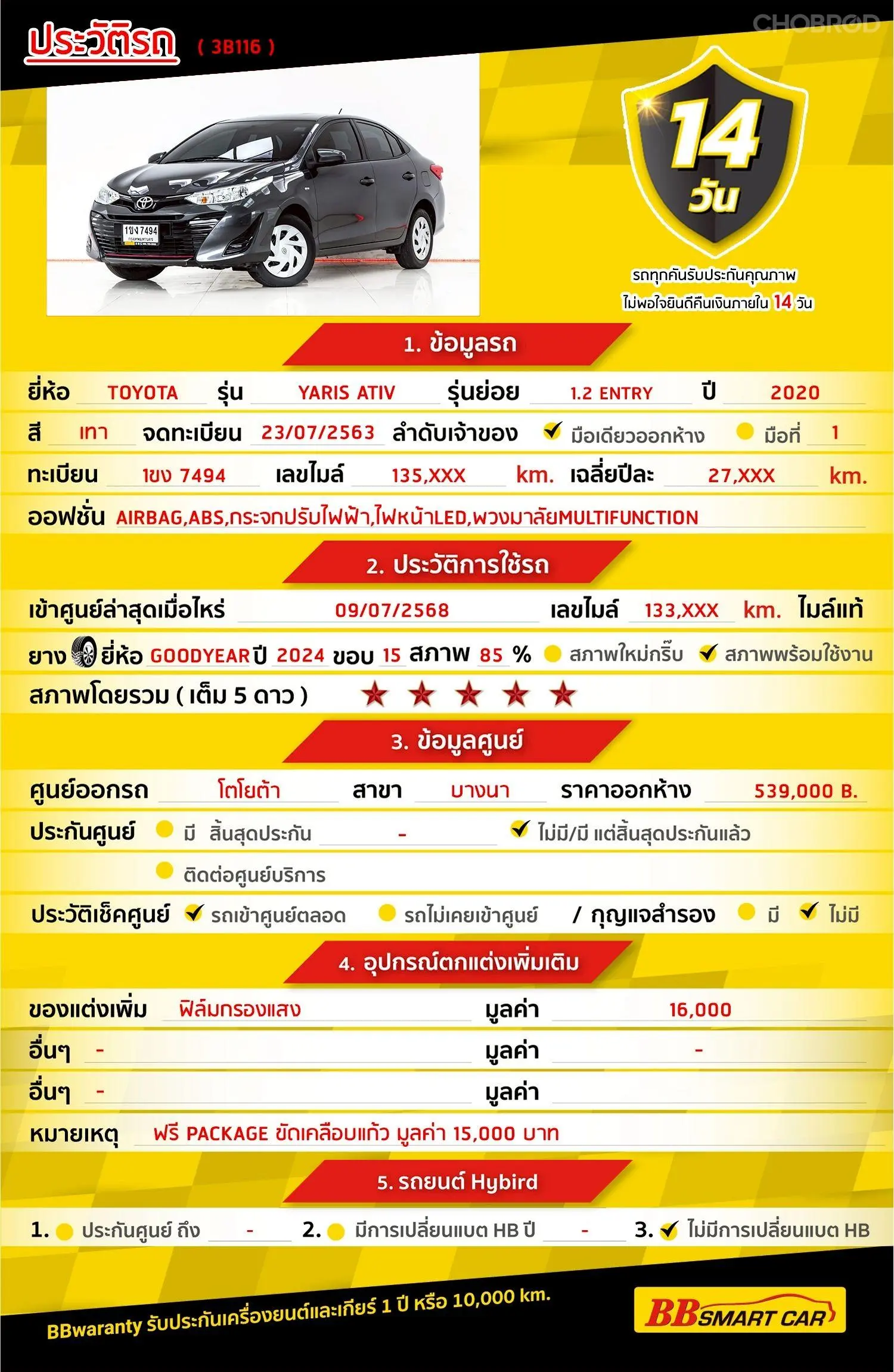 TOYOTA YARIS ATIV 1.2 ENTRY AT 2020 ออกรถ 0 บาท จัดได้ 344,000 บ. Line:@*******แสดงข้อมูล 🔥 จอง 199 บาท ส่งบัตรประชาชน รู้ผลอนุมัติภายใน 30 นาที ไม่ผ่านคืนเงินจองทุกกรณี 🔥 ซื้อรถกับ BB พร้อมให้คำปรึกษา แก้ทุกปัญหา ให้ทุกเรื่อง บริการ call center 24 ชม. 🔥 BB Care Plus รับประกันหลังการขาย สูงสุด 2 ปี หรือ 20,000 km. 🔥 มีรถให้เลือกมากกว่า 1,800 คัน บีบี 3 สาขาบางใหญ่ (ใกล้โลตัสบางใหญ่) รหัสรถ 3B116 ราคา 324,000 บ. ผ่อนเพียง 5,675 บ. Brand : TOYOTA Year : 2020 Model : YARIS ATIV Grade : 1.2 ENTRY Engine : 1200 CC. Type : เบนซิน Gearbox : A/T Color : เทา Mileage : 135,XXX km. (ซื้อสด ราคานี้ยังไม่รวมค่าดำเนินการ 10,000 บ.) 🚩 Price 324,000 บาท ยอดจัด : 334,000 บาท เงินดาวน์ : ฟรีเงินดาวน์ ประกันภัย : ฟรีประกันภัย 1 ปี ค่าดำเนินการ : 10,000 บาท รวมออกรถ : 0 บาท ผ่อน 36 = 10,919 บาท ผ่อน 48 = 8,401 บาท ผ่อน 60 = 6,980 บาท ผ่อน 72 = 6,245 บาท ผ่อน 84 = 5,675 บาท *เงื่อนไขเป็นไปตามที่ไฟแนนซ์กำหนด โปรโมชั่นพิเศษ สำหรับลูกค้าเครดิตดี 🚩เลือกรับเรทดอกเบี้ยพิเศษ 📍36 งวด = 1.29% 📍48 งวด = 1.99% 📍60 งวด = 2.39% 📍72 งวด = 3.59% 🔥 เงื่อนไข โปรโมชั่น ดอกเบี้ยเริ่มต้น 1.29% ตลอดอายุสัญญา - ยอดจัดไฟแนนซ์ 300,000-600,0000 บาท - ผ่อนสูงสุด 72 เดือน - เป็นลูกค้าประวัติดี พนักงานประจำ เงินเดือน 20,000 บาท ขึ้นไป - ค่าดำเนินการแคมเปญ 20,000 บาท (รวมในยอดจัดได้) 🎗Car Hightlight มาแล้วค่ะ TOYOTA YARIS ATIV เครื่อง 1200 มาพร้อมรูปลักษณ์ที่ทันสมัย มีความโมเดิร์นเป็นเอกลักษณ์สะดุดตาทั้งภายนอกและภายใน พร้อมอุปกรณ์อำนวยความสะดวกครบครัน ช่วงล่างที่แน่น ทำให้เกาะถนน และมีการทรงตัวที่ดี ทำให้ขับขี่ได้อย่างมั่นใจและรู้สึกปลอดภัย สภาพป้ายแดงค่ะ ราคาไม่แพง ไมล์แท้ รถดูแลศูนย์ตลอดค่ะ 🎗ภายใน ภายในสะอาดเรียบร้อย Airbag กระจกมองข้างปรับไฟฟ้า เซ็นทรัลล๊อก พวงมาลัย Multifunction กระจกไฟฟ้า เบาะผ้า พวงมาลัยเพาเวอร์ แอร์ วิทยุ - CD เบรค ABS กุญแจรีโมท-สัญญานกันขโมย อ๊อฟชั่นครบคันเลยค่ะ สภาพใหม่มากค่ะ 🎗ภายนอก ไม่มีชนหนักหรือพลิกคว่ำค่ะ ไฟซีนอน กระจกมองข้างพับไฟฟ้า ดูแลรักษาง่าย แถมช่วงล่างยังแน่นๆ ให้ความโดดเด่นเป็นเอกลักษณ์ของ TOYOTA YARIS ATIV ทดลองขับแล้วช่วงล่างและเครื่องยนต์ยังแน่นค่ะ 🎗ความคุ้มค่า รถสภาพนี้หายากมากค่ะบอกเลย รถไมล์แท้อีกด้วย คัดเลือกคันนี้มาแล้วค่ะสภาพดีมากๆ เทียบกับราคานี้ถือว่าคุ้มค่ามากๆค่ะ ⭐การรับประกันหลังการขาย BB Care Plus สูงสุด 2 ปี หรือ 20,000 km. ด้วยช่างที่ผ่านการอบรมจากศูนย์ชั้นนำของประเทศ 🎉Special offer เฉพาะ บีบีสมาร์ทคาร์ ที่นี่ที่เดียว ⭐ดอกเบี้ยเริ่มต้น 1.29% มีไฟแนนซ์รองรับหลายที่ค่ะ ⭐ฟรี!! แพคเก็จ ขัดเคลือบแก้ว มูลค่า 15,000 บาท ทุกคัน ⭐อนุมัติไว 30 นาที นำเอกสารมาให้ครบรับรถกลับบ้านทันทีค่ะ ⭐BB Care Plus รับประกันหลังการขาย สูงสุด 2 ปี หรือ 20,000 km. ⭐มี 6 สาขา ในกรุงเทพและปริมณฑลใกล้บ้านท่าน ⭐ร